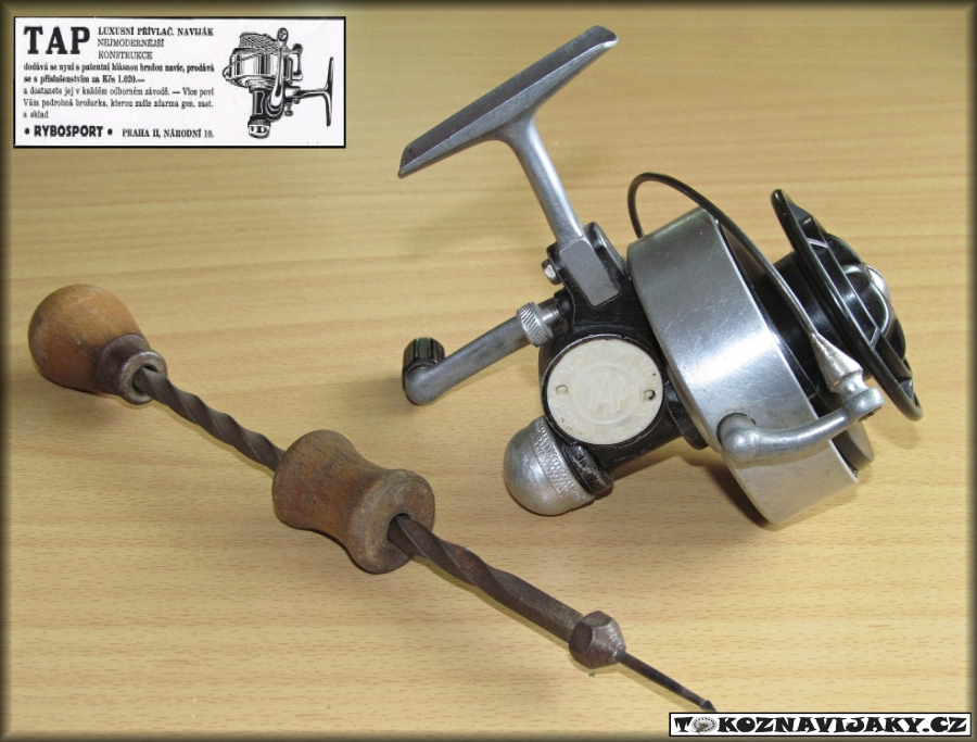 Průkopníkem ve výrobě rybářského náčiní se stal bezesporu i Adolf Tlustoš. Před 2. světovou válkou provozoval ve své dílně v Praze – Kbely autodílnu, ve které vyráběl přívěsné vozíky k motocyklům pod obchodní značkou TAP. Vzhledem k tomu, že ve volných chvílích Adolf Tlustoš rybařil, pohrával si s myšlenkou na výrobu vlastního navijáku. Po válce svou myšlenku tento šikovný mechanik přenesl do reality a 21. června 1945 si nechal patentovat naviják vlastní konstrukce, který pojmenoval TAP, tedy začátečními písmeny jména a místa - Tlustoš Adolf Praha.