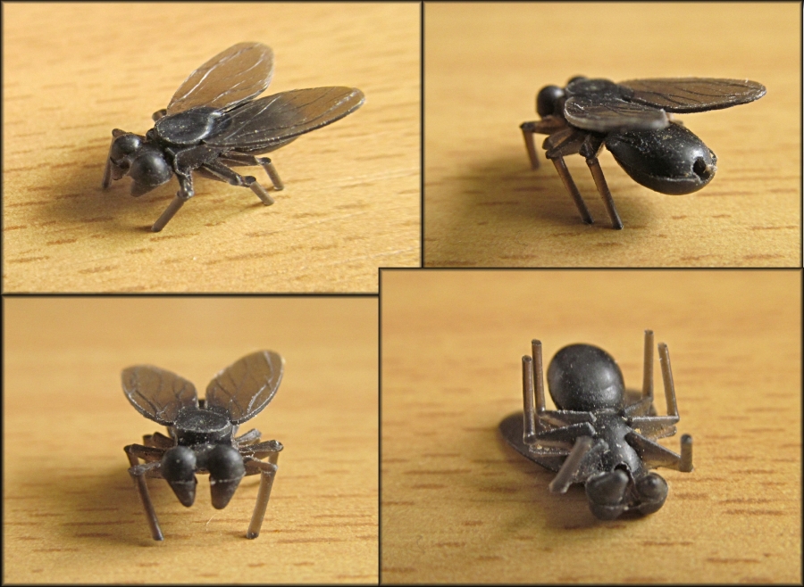 4. imitace mouchy ze speciální hmoty s průhlednými křídly.