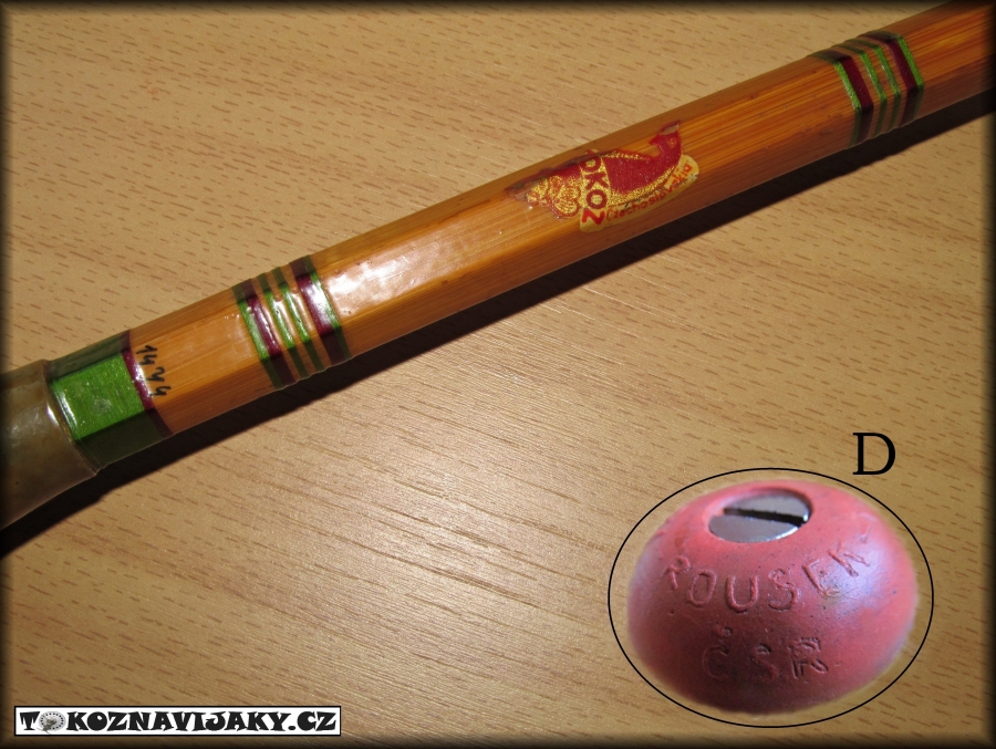 A - dvojdílný muškový prut Rousek.